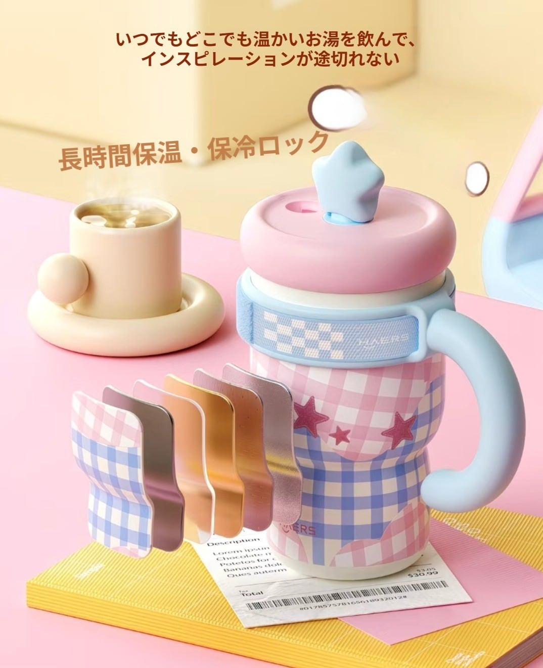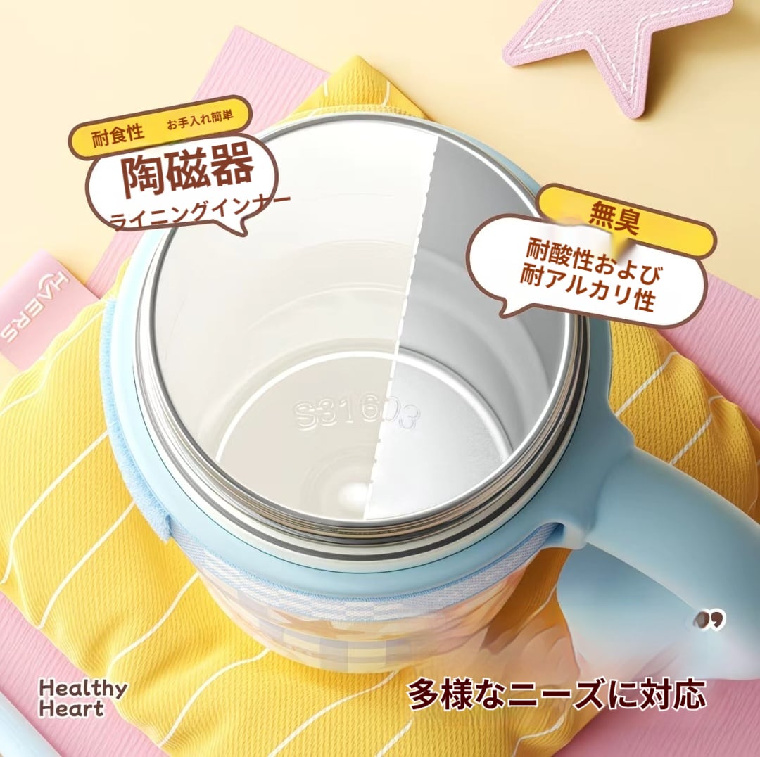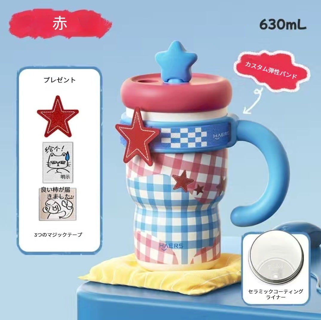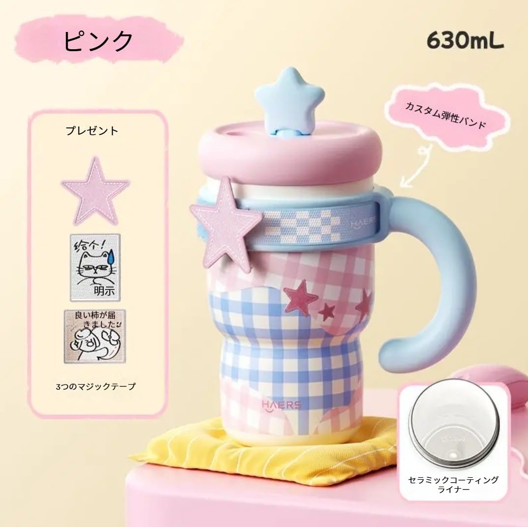 047.面ファスナー付き 持ち手付き保温ボトル デザイン抜群 セラミックコーティング内壁 保温・保冷両対応 通学・オフィスに最適