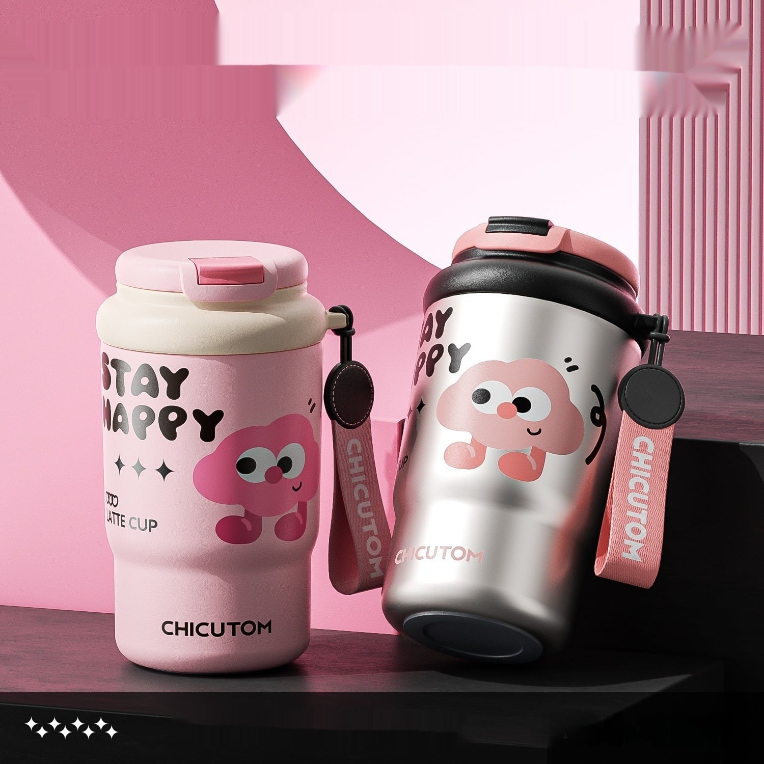 051.高見え✨ステンレス保温ボトル セラミックコーティング内側 保冷OK ワンタッチ開閉 大容量 スポーツ・アウトドア用水筒